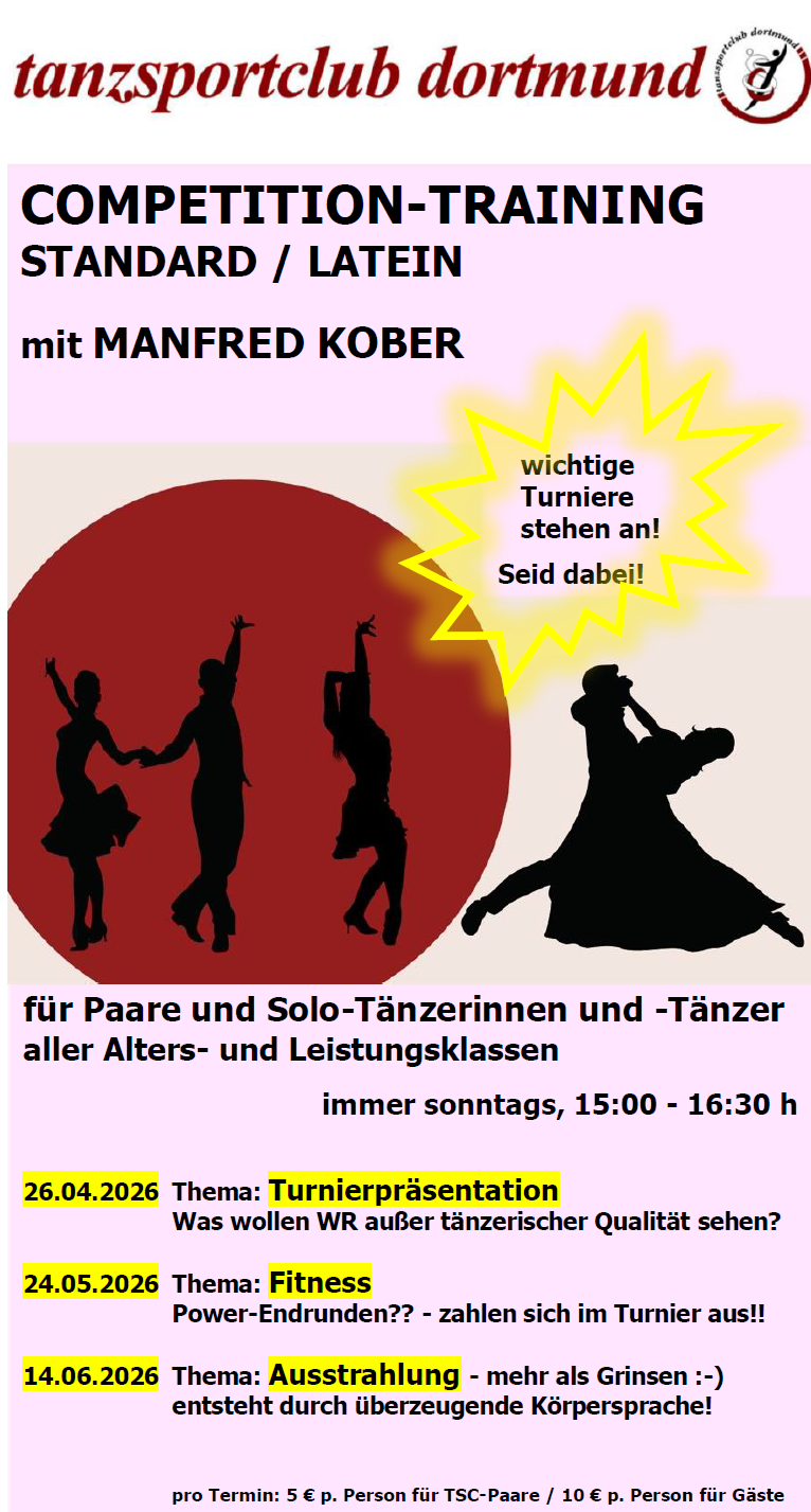 für Standard- und Lateinpaare und Solo-Tänzerinnen und Tänzer