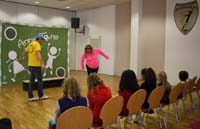 Ein Aktionstag, um das Selbstvertrauen der Kinder zu stärken und ihnen und ihren Eltern das schwierige und wichtige Thema 'Prävention vor sexuellem Missbrauch' näherzubringen - dazu war heute der Stadtsportbund mit einem tollen Theaterstück bei uns zu Gast. - In vielen, sehr eindrucksvoll gespielten Geschichten, bei denen die kleinen Zuschauer direkt mit einbezogen wurden, zeigten die Schauspieler als Mädchen 'Anna' und Junge 'Tore' verschiedenste Situationen und Erlebnisse und ermutigten immer wieder: "Vertraut eurem Gefühl" und "Sprecht mit jemanden, dem ihr vertraut, liebe Kinder, wenn euch etwas unangenehm ist! - Anschließend gab's getrennte Workshops für Kinder und Eltern, und am Ende waren alle einig: ein toller, ganz besonderer Nachmittag!