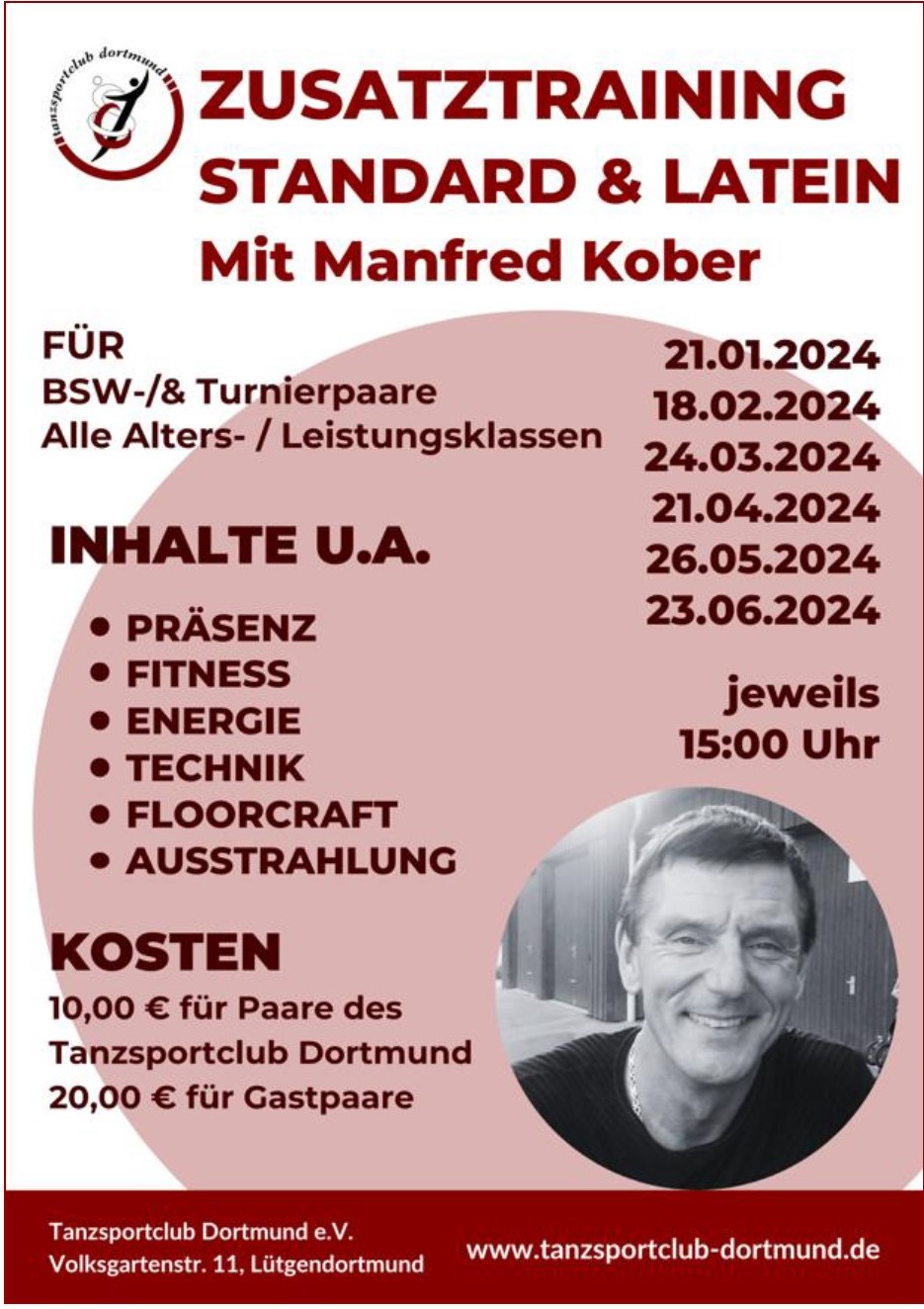MANFED KOBER ist am kommenden Sonntag wieder zu Gast - seid dabei, liebe Standard- und Latein-Tänzerinnen und -Tänzer!!