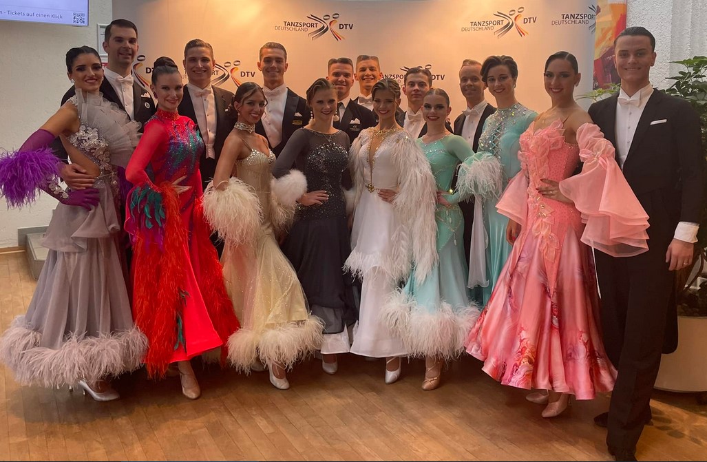 Beim DEUTSCHLAND-CUP der HGR A Standard! Da schlägt das Tänzer/innen-Herz schon ein wenig höher.  Wie immer war es ein bärenstarkes Feld in dieser leistungsstärksten Alters- und zweithöchsten Leistungsklasse - und unsere beiden Dortmunder Paare (ganz rechts im Bild) präsentierten sich in dieser 26-paarigen Konkurrenz ganz hervorragend!  Beide zogen ins heiß umkämpfte Semifinale ein - wow!! - und sie genossen es ganz besonders, im Rahmen der Wetzlarer Tanzgala zu Livemusik (!) zu tanzen. FELIX GOLCH/ANNE SOPHIE HEISING  freuten sich sehr über ihren 12. Platz, und MARKO RAVLIC/ANNEL OSCHLYKOW  fehlten nur zwei Kreuze zum Einzug ins Finale... so war's ein super-toller 7. Platz - großartig!!