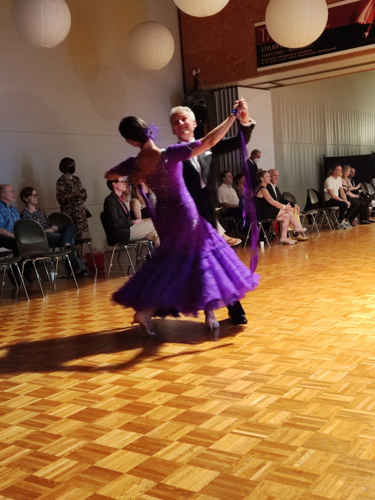 24 Paare waren am Start - unter ihnen auch Klaus Meng und Gabriele Kunau. Wie schön es war vor Publikum zu tanzen, zeigte ein Blick in die strahlenden Gesichter der Akteure. Wie es die TSO vorgab, gab es einen klaren Schnitt zum Semifinale - noch 13 Paare wurden dazu aufgerufen. Hier präsentierten sich Klaus und Gabriele leichtfüßig und musikalisch.