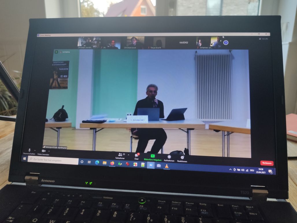 Neue Wege schlug der Vorstand bei der ersten Hybridveranstaltung ein: Nur 8 Personen hielten sich im Tanzsportzentrum auf, alle anderen Mitglieder nahmen per "Zoom" an der Mitgliederversammlung teil und alle stimmten elektronisch ab.