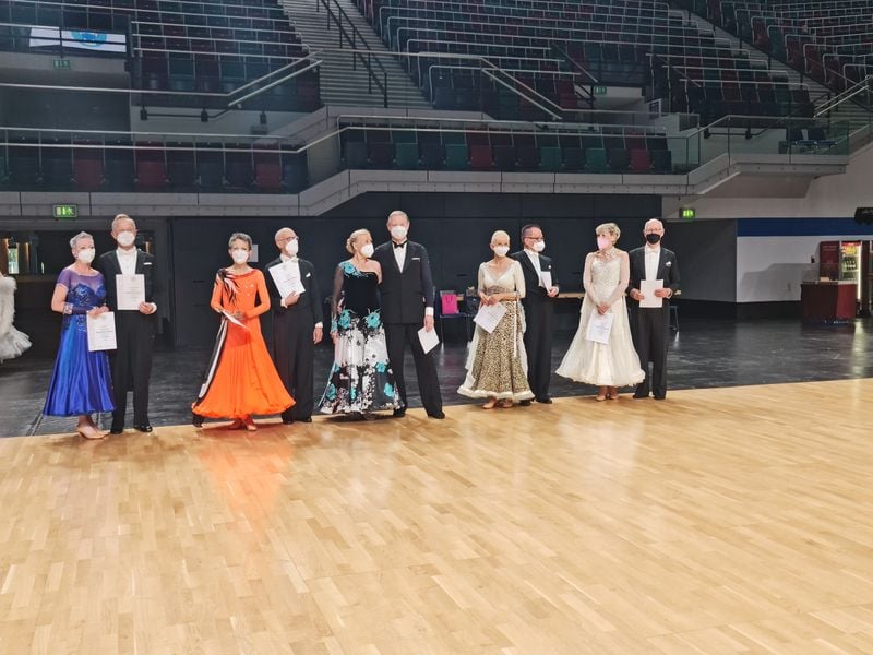 Am Turnier der Sen. IV S Standard nahmen 13 Paare teil - das bedeutete für die Finalisten, dass drei Runden getanzt werden mussten. Dieter und Angelika erreichten das Finale und erhielten von den 7 Wertungsrichtern zahlreiche "Dreien" und wurden  im Endergebnis Vierte. Überglücklich meldete sich Angelika: "Unser 'Kaltstart' nach 8 Monaten Turnierpause und 7 Monaten Trainingspause war einfach wunderbar!! Ein Turnier nur für die Seele - drei Runden!! - beendet mit einem 4. Platz 🐾- was will die Tänzerseele mehr?! Wir sind selig!!