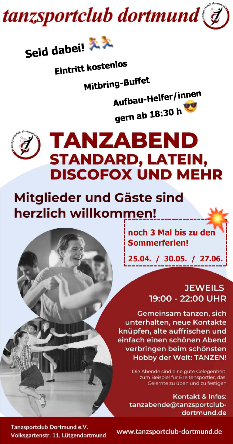 Freut euch mit uns auf den nächsten Samstag und unseren wunderbaren Tanzabend!!
