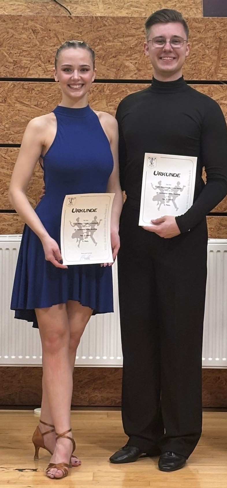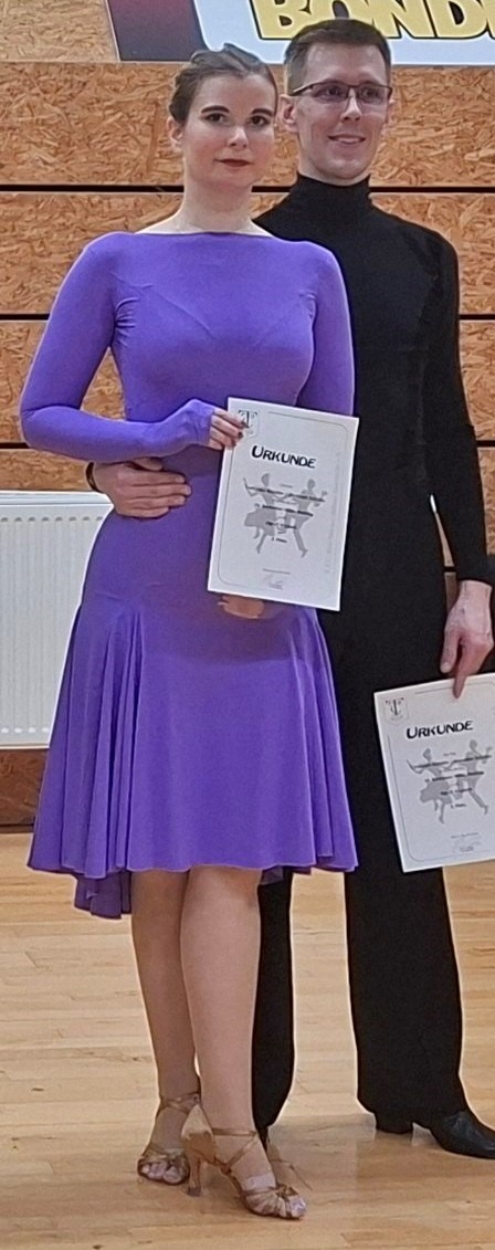 gelang ANDRÉ/LENA in Bochum: In ihrem allerersten Lateinturnier erreichten sie im 9-paarigen Starterfeld der HGR D nicht nur ganz souverän das Finale, sondern verpassten nur denkbar knapp den Treppchenplatz 3. Mit nur einer Platzziffer Differenz war es ein seeeeehr guter 4. Platz!