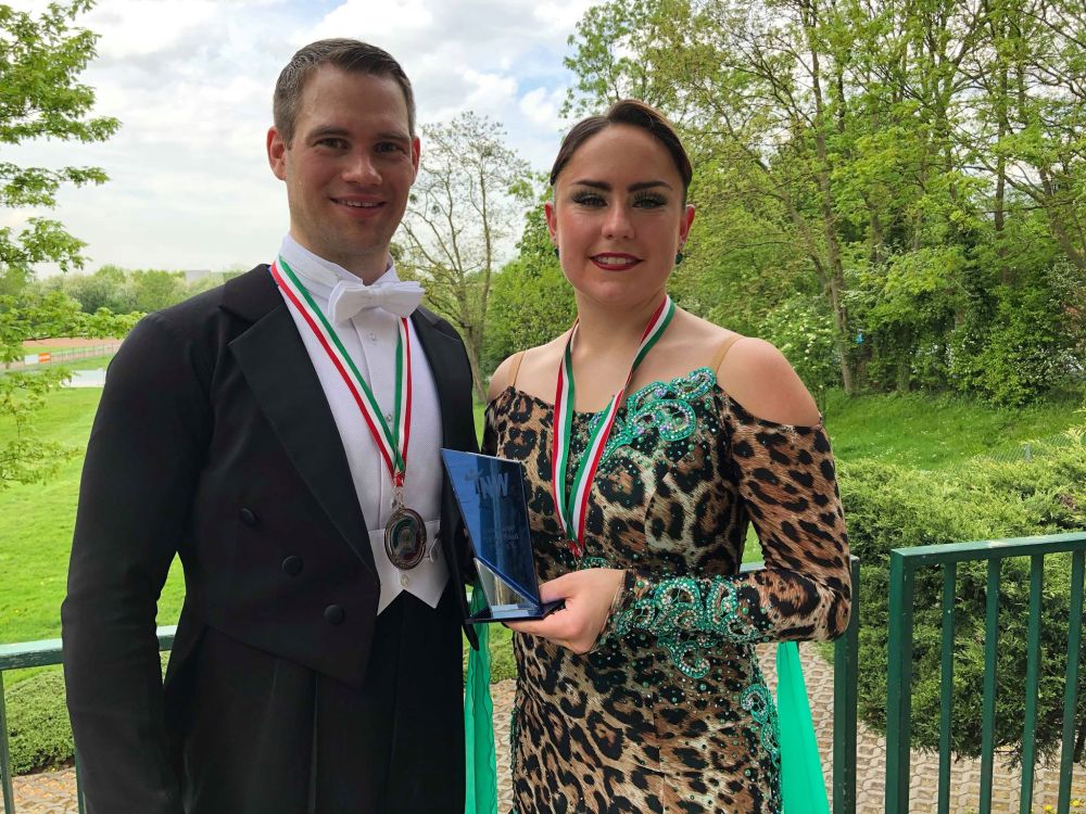 Welch toller Erfolg für Grischa und Katarina - unsere Kinder- und Jugendtrainer am Freitag: 10 Tänze Meisterschaft beim TD Düsseldorf Rot-Weiß - und die Beiden sind die Überraschung des Abends. Erst im Februar haben sie mit dem Lateintraining begonnen - und jetzt direkt auf das Treppchen getanzt. 21 Paare waren an diesem Abend am Start, das bedeutete, dass 6 Runden getanzt werden mussten - nach 5 Jahren 10-Tänze-Pause keine ganz leichte Aufgabe, aber Grischa und Katarina meisterten diese mit Bravour. Im Standardbereich waren sie überlegene Erste, im Lateinturnier wurden sie auf den 5. Platz gewertet. Das ergab im Ergebnis den 3. Platz, die Bronzemedaille, das drittoberste Treppchen.