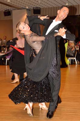 Auch Jochen Nölle und Tatjana Flohr waren mit ihrem 27. Platz von 70 Paaren im Turnier der Sen. I S Standard sehr zufrieden, denn damit rücken sie immer deutlicher an die 24-er Runde heran.