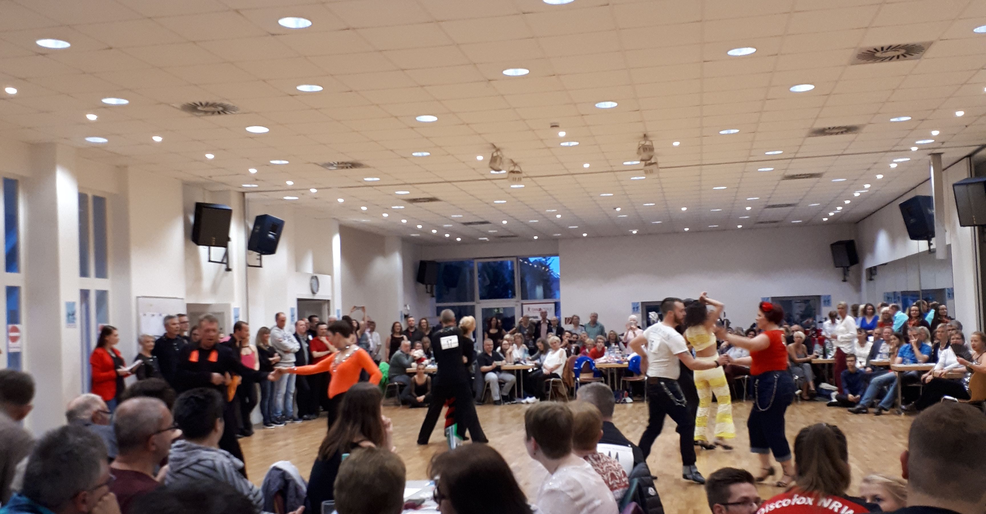 Kaum zu glauben, wie viele Menschen das Tanzsportzentrum fassen kann - wer am Samstag zu Beginn der Veranstaltung um 14.00 Uhr nach einem freien Platz suchte, konnte nur noch stehend das Geschehen auf der Tanzfläche verfolgen. Vier Stunden später war das Clubheim so voll, dass man kaum noch Stehplätze ergattern konnte - die Stimmung überschäumend, laut wurden Nummern gerufen und Paare unterstützt - es war ein richtiges Erlebnis hier vor Ort zu sein. Insgesamt 85 Paare waren angereist, um in den verschiedenen Alters- und Leistungsklassen zu tanzen - alle einte das besondere Tanzvergnügen und die Freude am Tanzen. Richtig spektakulär waren die Küren der S- Paare - hier wurde auch das Publikum noch einmal so richtig aktiv und feuerte die Paare weiter an. Souverän führte Axel Ziegler als Turnierleiter durch den Nachmittag und Abend. Mit den Siegerehrungen endete ein bestens vorbereitetes Turnier - der sehr herzliche Dank geht an all die Aktiven, die sich in irgendeiner Weise engagiert haben und zum Gelingen des äußerst vergnüglichen Tages beigetragen haben. Wir dürfen uns schon auf das nächste Jahr freuen ...