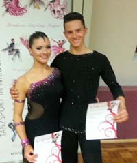 Beim traditionellen Ostermarathon in Braunschweig tanzten Igor Getz/Dana Kober ihr erstes gemeinsames Turnier, und zwar in Igors Startklasse, der Jugend A, der höchsten und entsprechend schwierigen Leistungsklasse der Jugend, in die sich Dana (aus der C-Klasse kommend) ganz überragend hineingetanzt hat. Völlig souverän qualifizierten sich Igor und Dana fürs Finale des 12-paarigen Turniers und ertanzten einen tollen 4. Platz, der auch einige Einser- und Zweierwertungen enthielt - super!!