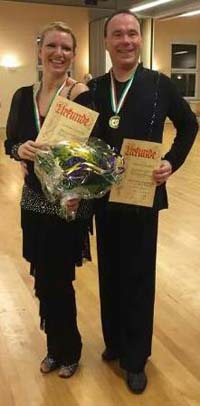 Bei den heutigen Landesmeisterschaften in Essen konnten sich Olaf Wittka/Tanja Bracht in einem kleinen Feld von 4 Paaren, was aber bekanntlich oftmals besonders schwierig ist, in der Sen II A Latein sehr eindeutig gegen ihre Konkurrenten durchsetzen: alle Tänze klar gewonnen, den Jive sogar mit allen Einsen - wow!! Überglücklich nahmen sie als Landesmeister die Goldmedaille in Empfang; sie werden vorerst auch weiterhin in der A-Klasse bleiben, in der sie zunächst noch weiter reifen möchten - wir freuen uns auf weitere Erfolge und gratulieren sehr herzlich!