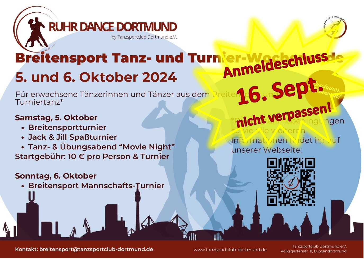 Am besten gleich zu Beginn des Wochenendes erledigen: ANMELDUNG zu den RUHRDANCE-Turnieren am 5./6. Oktober!!