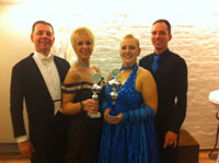 Am Samstag richtete die Tanzschule Ars Vivendi im Rahmen eines festlichen Balls den Westdeutschland-Cup in den Standard und Lateintänzen aus. Zwei unserer Standardpaare nahmen an den Turnieren der noch recht neu gegründeten Amateur League teil: Beide Paare konnten sich bereits in der Vorrunde gut präsentieren und sich am Abend unter dem Applaus der begeisterten Zuschauer in den Finalrunden noch einmal steigern. Achim Burghardt und Marina Prenzel setzten sich in der Rising Star Klasse gegen die gesamte Konkurrenz durch und bestiegen am Ende als strahlende Sieger den obersten Treppchenplatz. Klaus und Karin Klostermann belegten in der Super League, der höchsten Startklasse im Amateurbereich, einen hervorragenden 3. Platz!