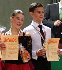 Dann folgte die schwierigste Konkurrenz des Tages, die Jun II B, in der Aleksey Rovner/Elisabeth Wormsbecher in ihrem ersten gemeinsamen Turnier wirklich tolles Tanzen zeigten und mit dem Vizemeistertitel belohnt wurden.